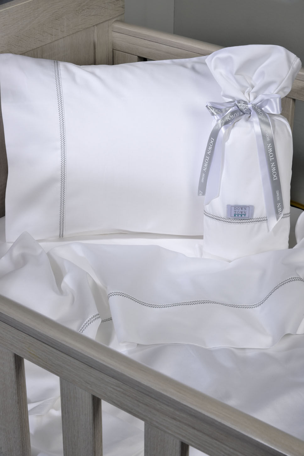 Σετ Σεντόνια Κούνιας Λευκό με Γκρι Ζικ Ζακ Ραφή